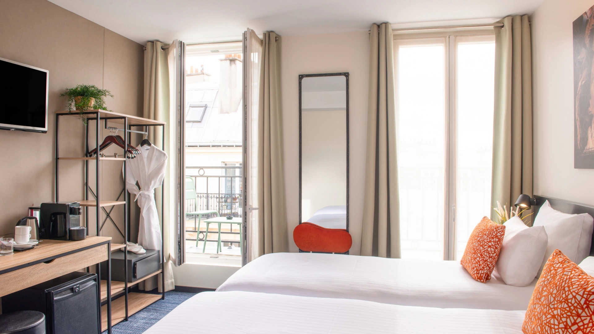 Spacieuses et lumineuses, leurs décors uniques invitent au lâcher prise. Elles donnent sur la rue de Bellefond, petite rue calme pavée et à sens unique.