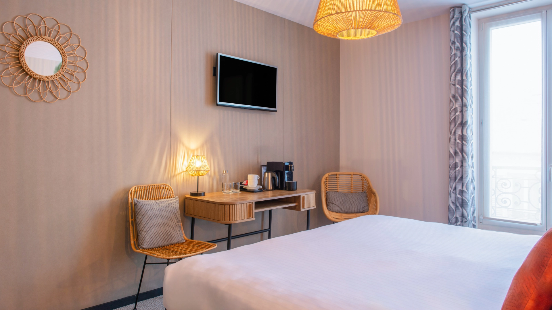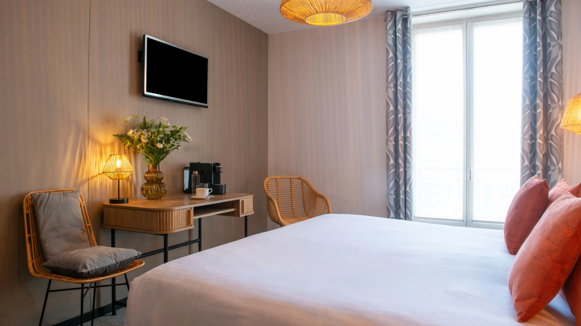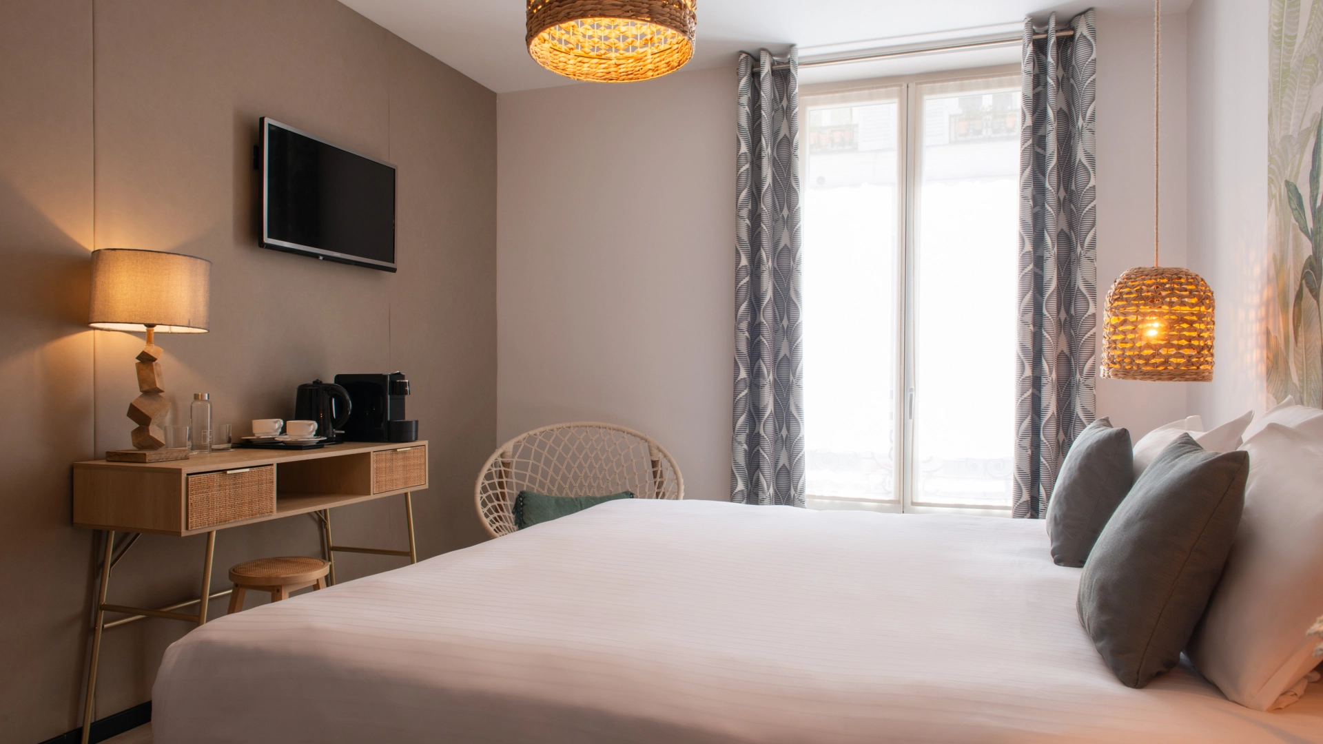 À l’Hôtel Helussi, chaque chambre a été pensée comme un lieu de repos intime et accueillant. Calme, lumière et harmonie s’invitent dans chaque détail, pour vous offrir un séjour tout en douceur au cœur de Paris.