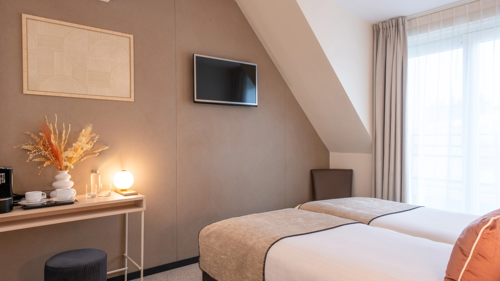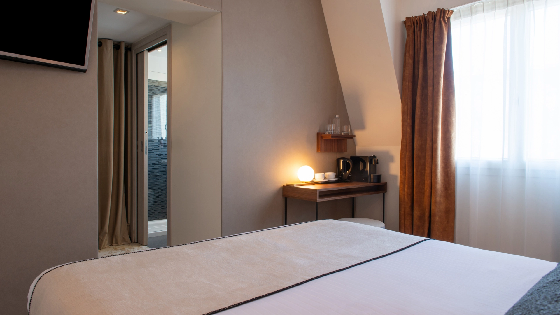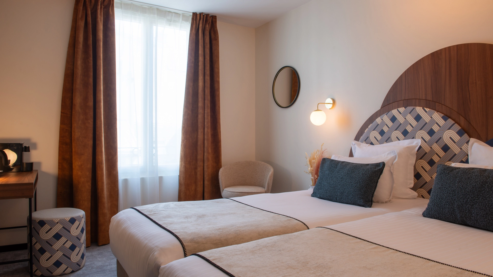 À l’Hôtel Helussi, chaque chambre a été pensée comme un lieu de repos intime et accueillant. Calme, lumière et harmonie s’invitent dans chaque détail, pour vous offrir un séjour tout en douceur au cœur de Paris.