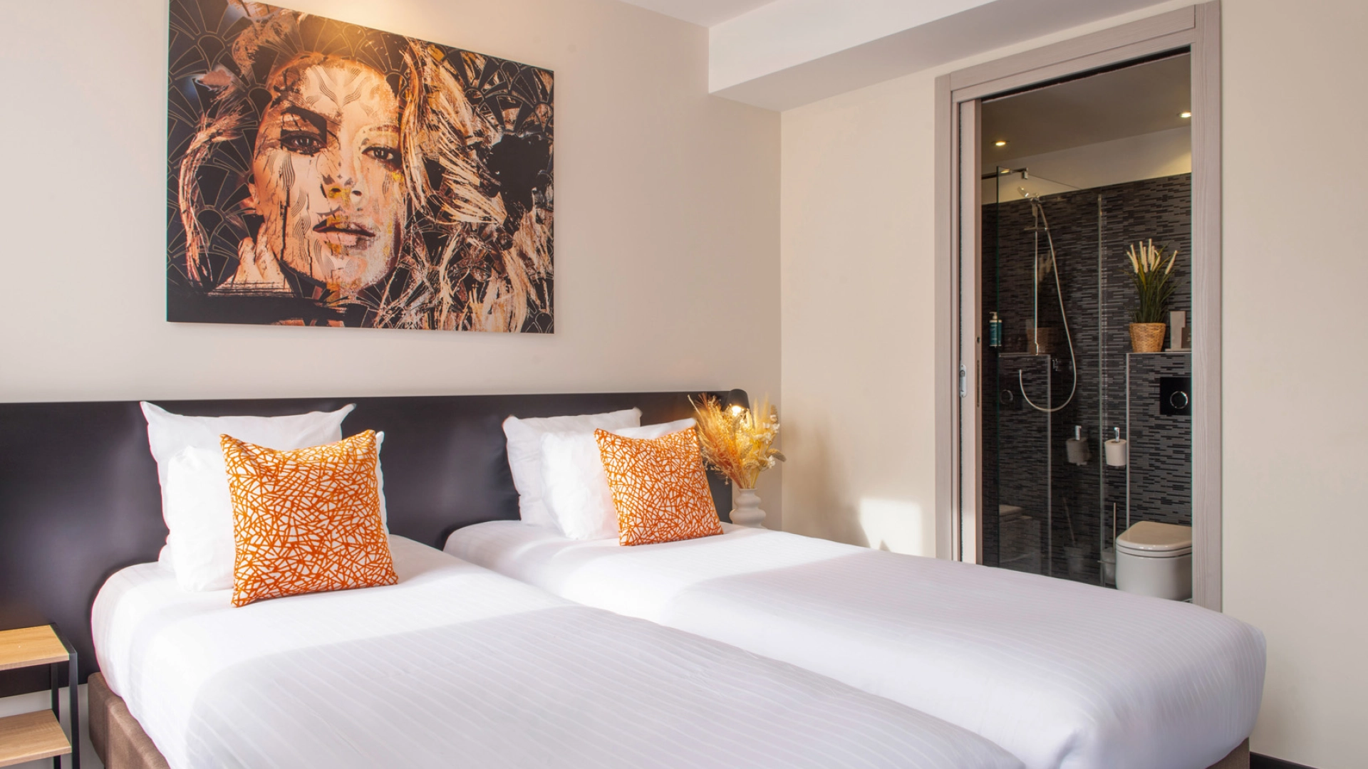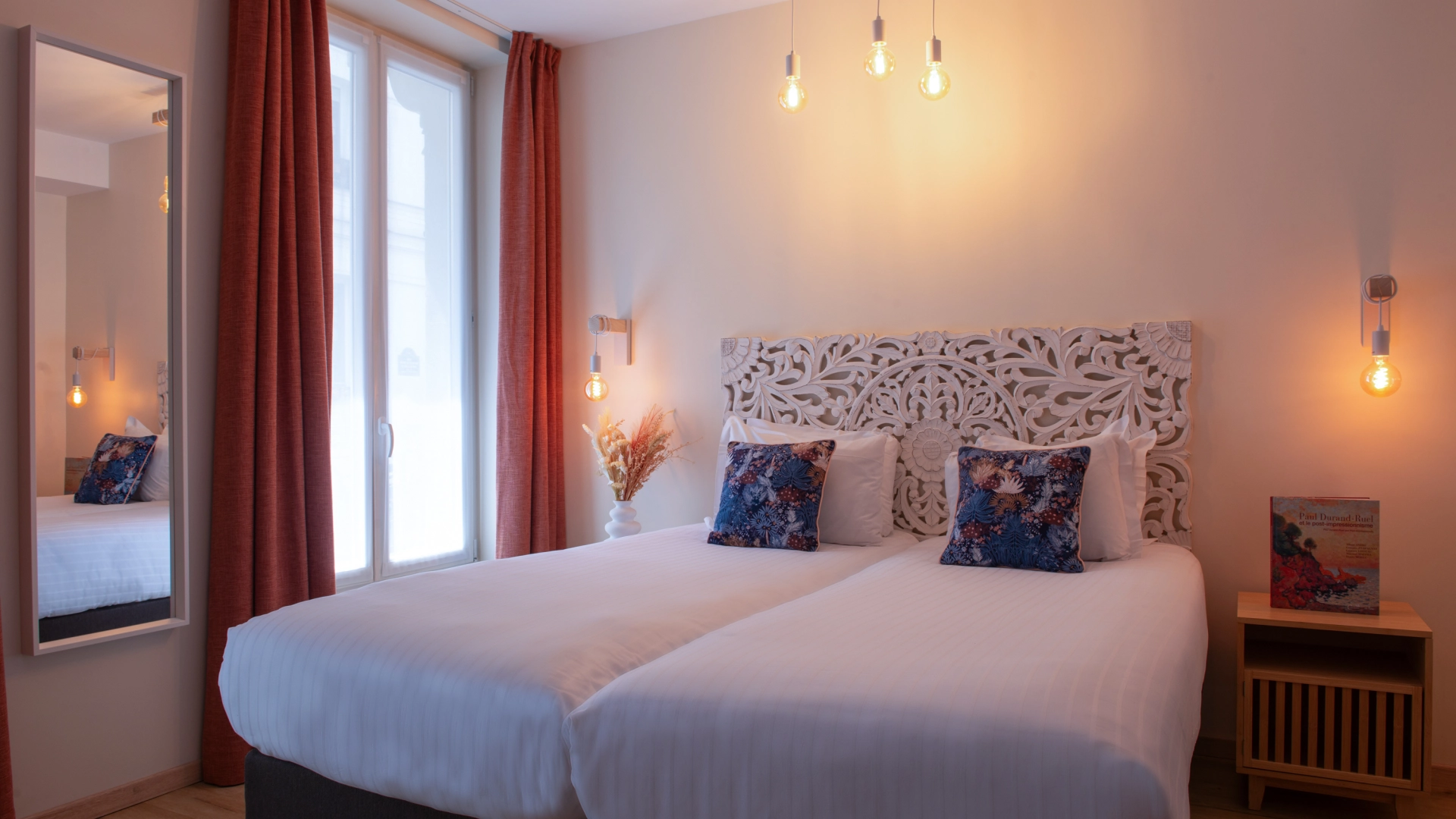 Des chambres pensées comme des refuges paisibles, donnant sur la cour intérieure.