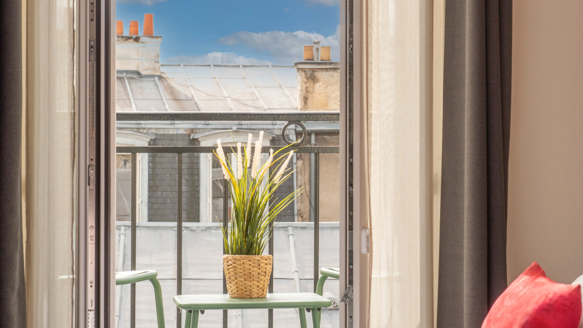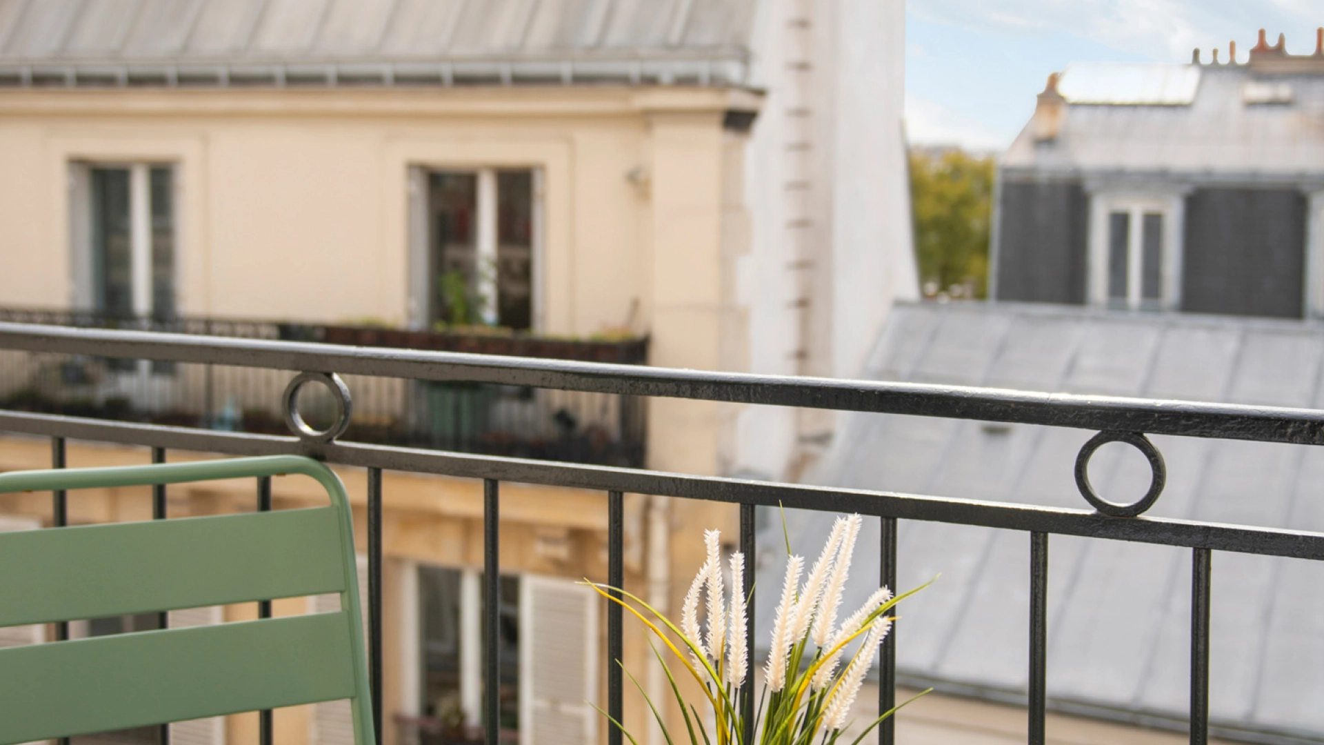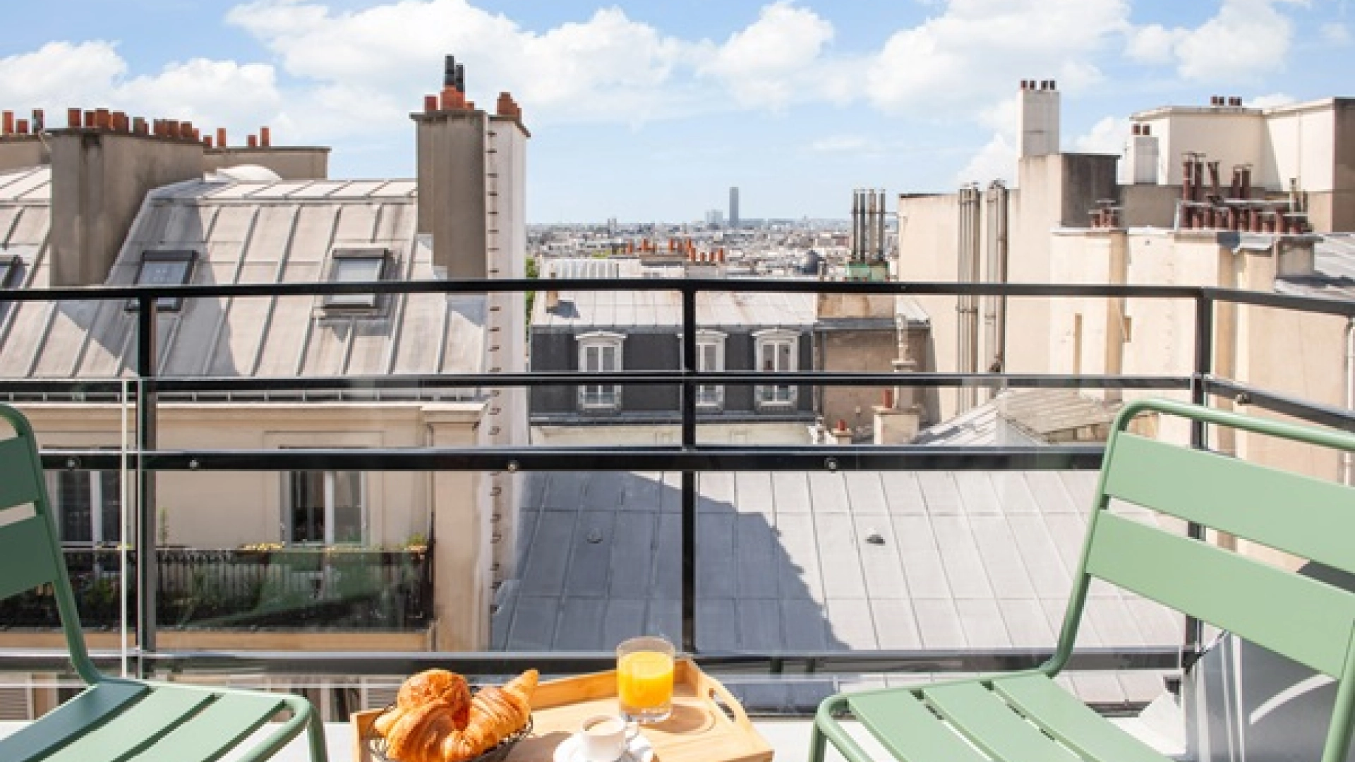 Un cocon lumineux dans les étages supérieurs doté de balcons avec vue charmante sur Paris.